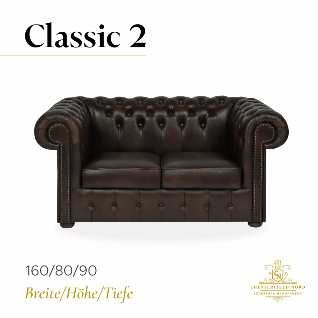 Das Chesterfield 2-Sitzer Sofa vereint zeitlose Eleganz mit höchster Verarbeitungsqualität. Gefertigt aus echtem Leder, das in mehreren edlen Farben erhältlich ist, besticht es durch sein dezentes Erscheinungsbild und außergewöhnlichen Sitzkomfort. Die charakteristische Knopfheftung, die weichen Sitzpolster und die geschwungenen Armlehnen verleihen ihm den unverwechselbaren klassischen Charme. Durch seine kompakten Maße eignet es sich perfekt für kleinere Wohnzimmer, Büros oder stilvolle Lounges. Ein elegantes und langlebiges Möbelstück, das Wärme, Klasse und Charakter in jeden Raum bringt.